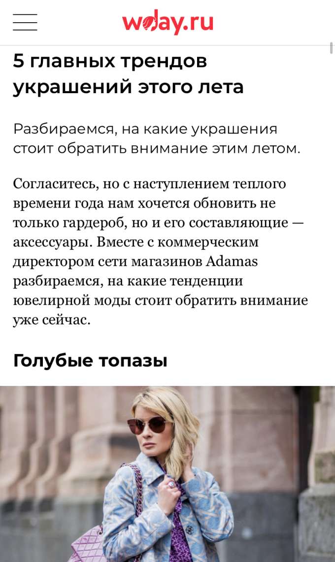 Реализованы форматы «тренды в ювелирной отрасли», «сочетание украшений с различными образами», «лайфхаки»